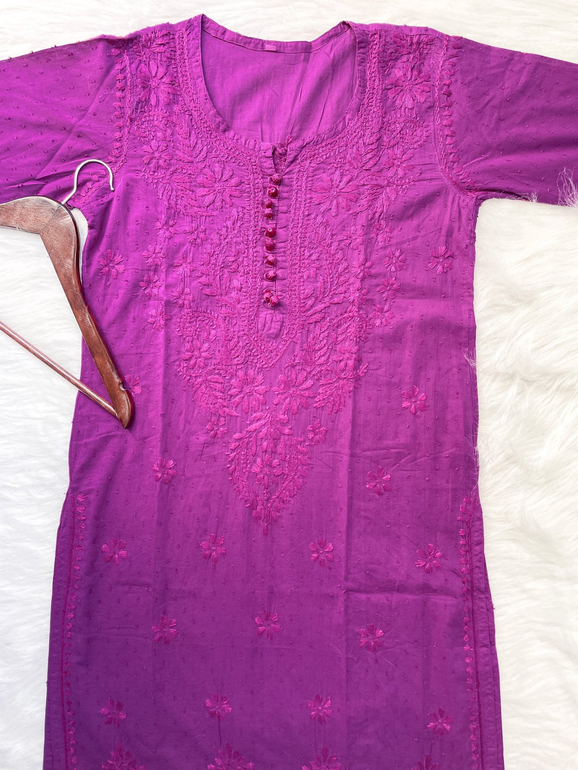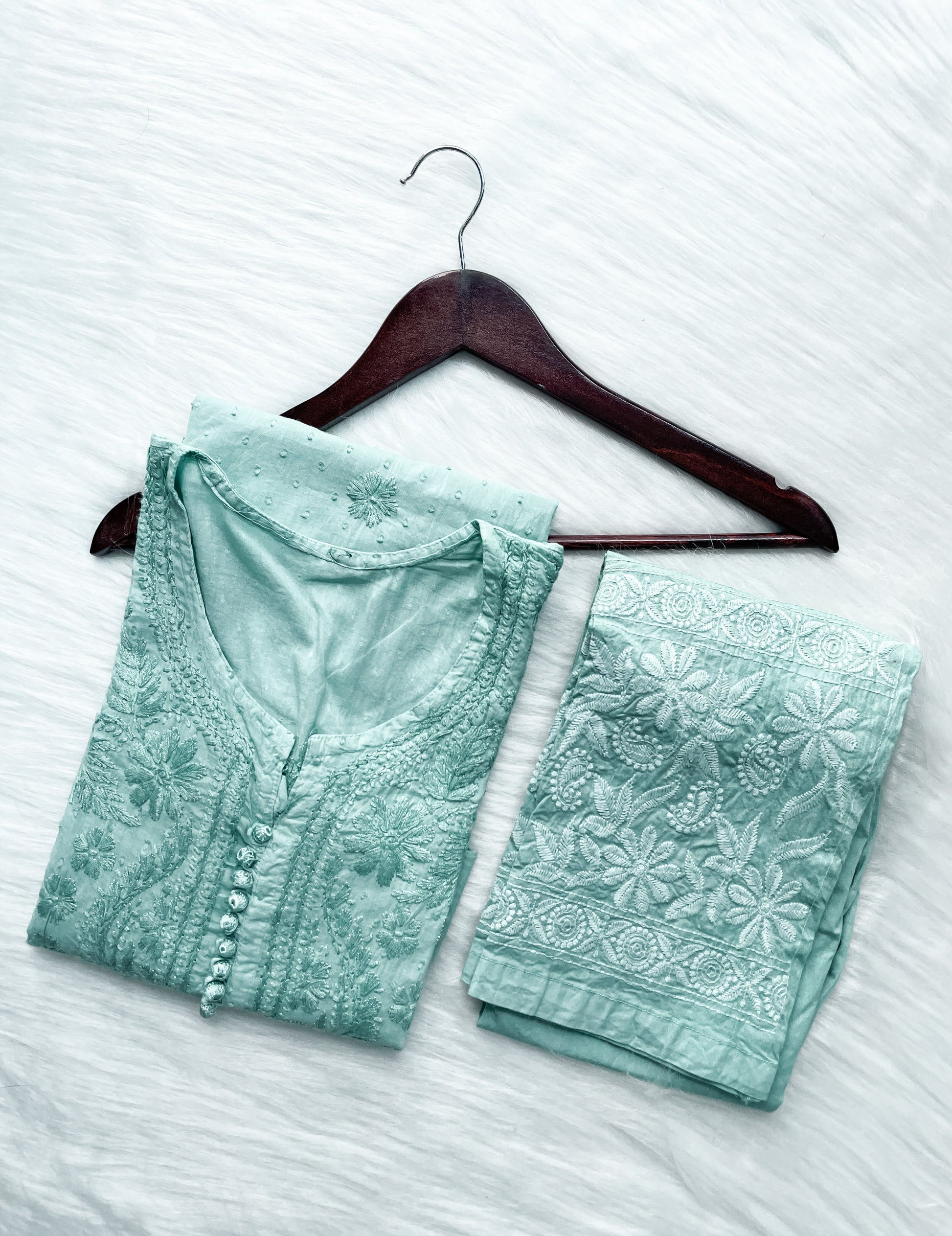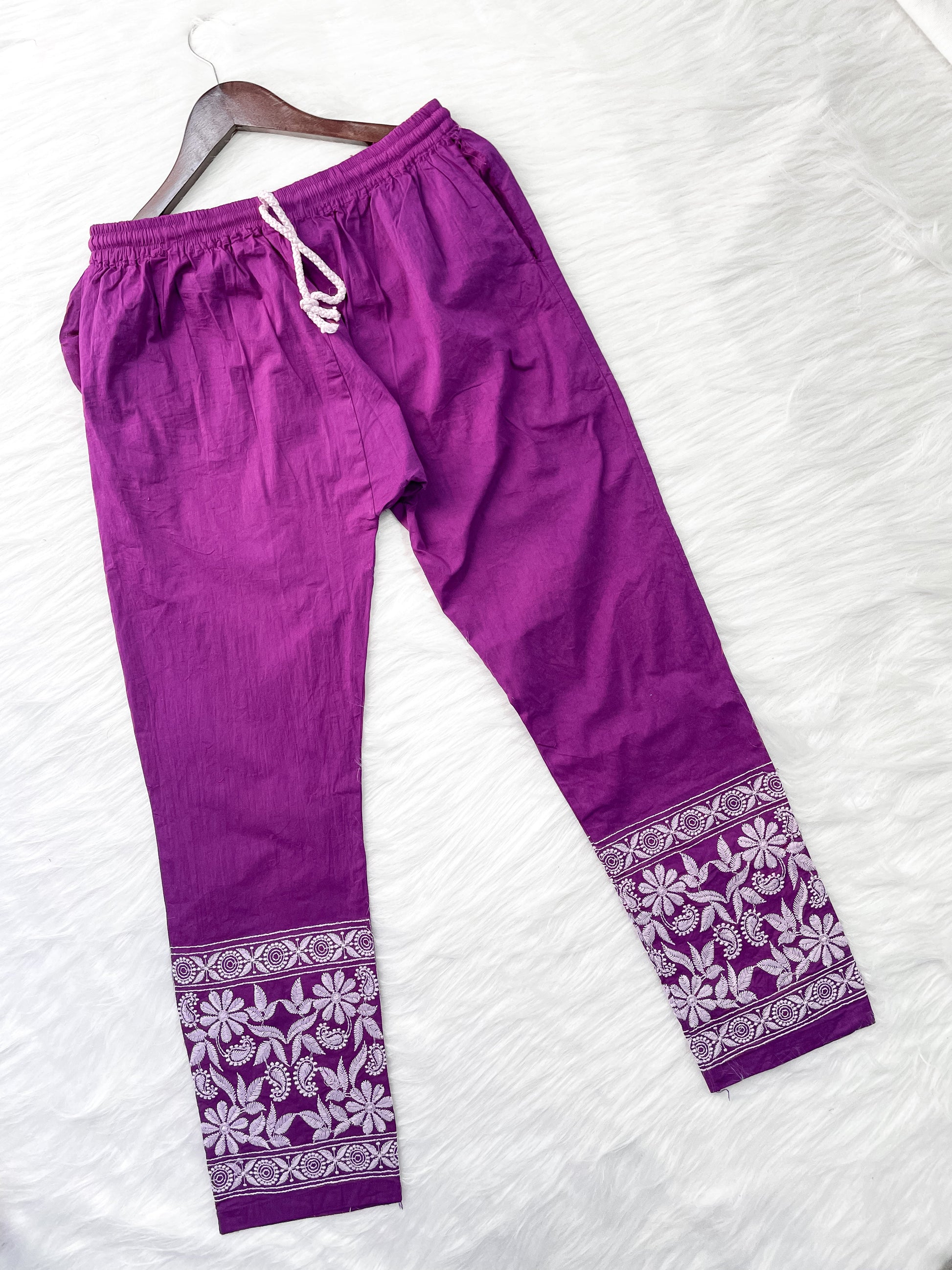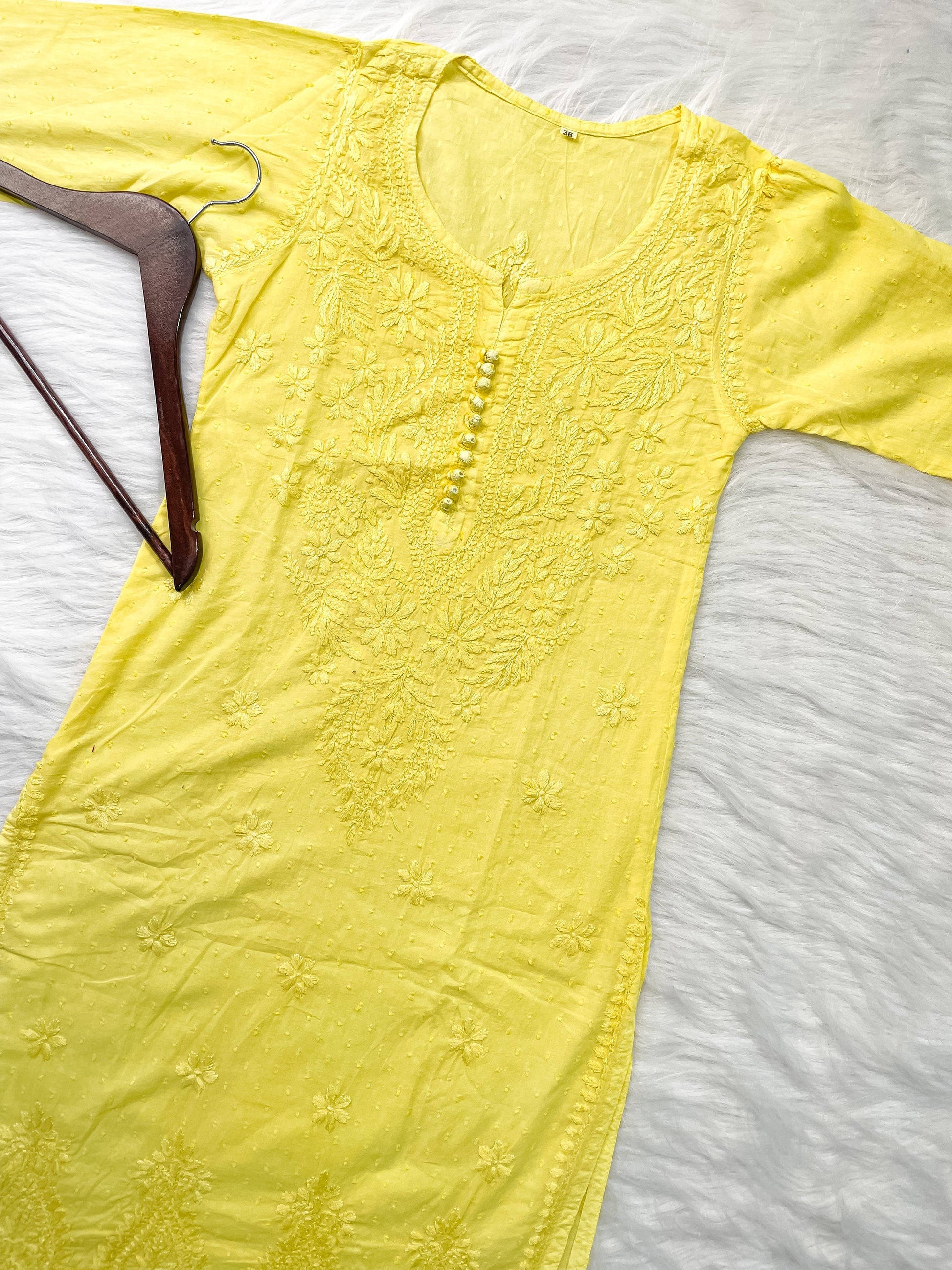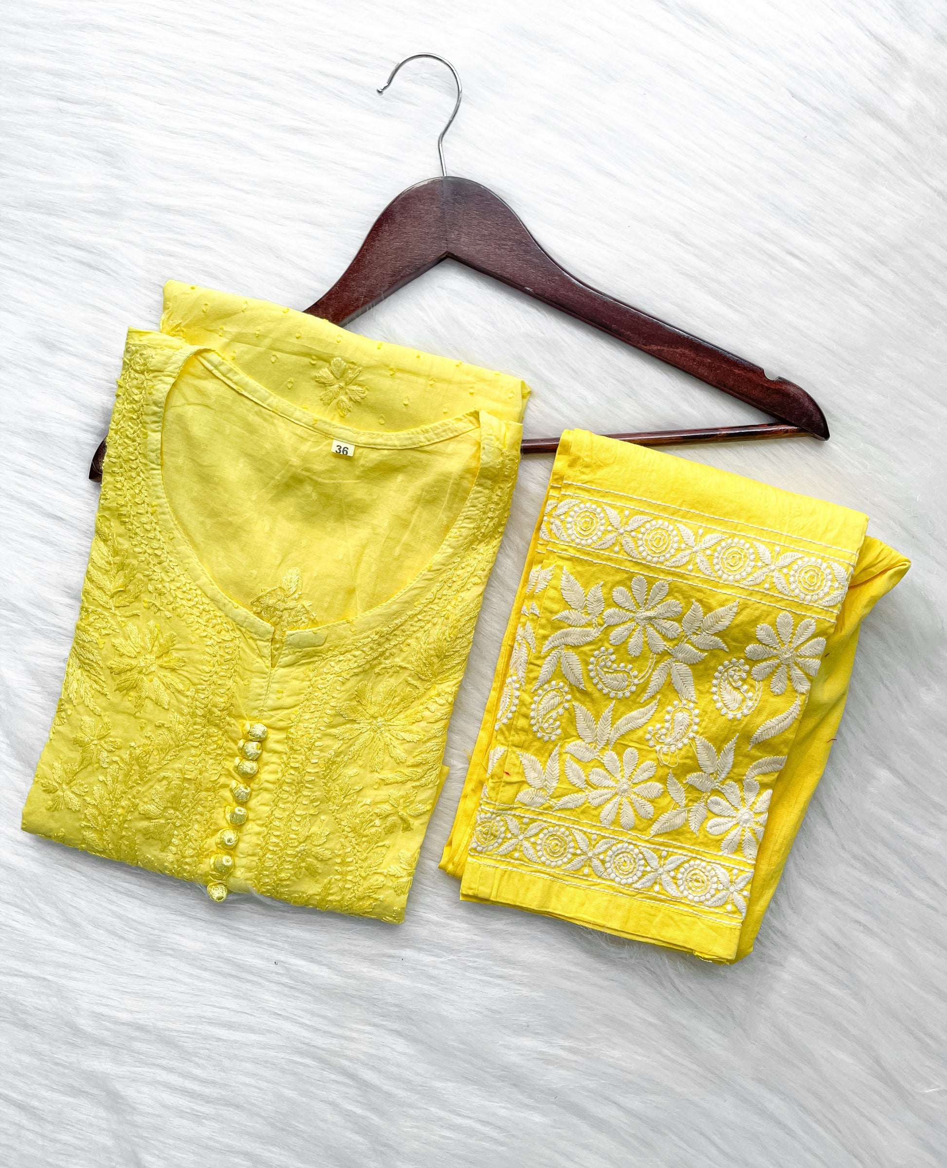 Dyed Cotton Chikankari Kurti & Lycra Pant Set, Pockets Both Side of the Pant