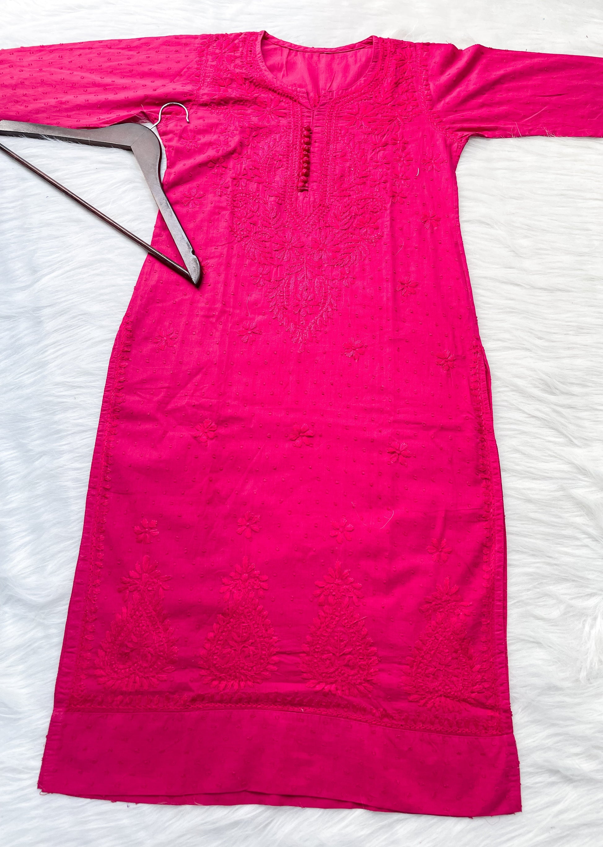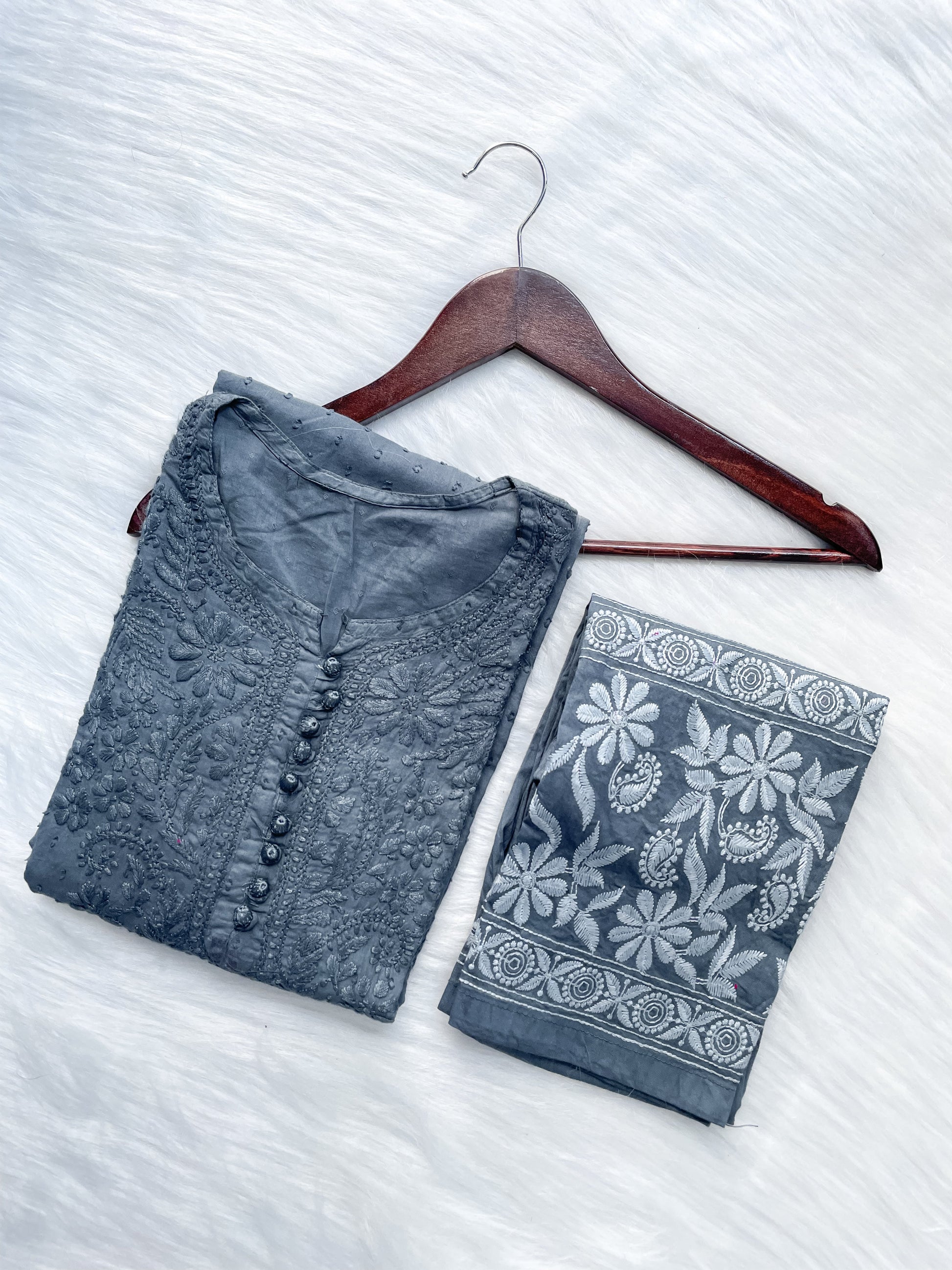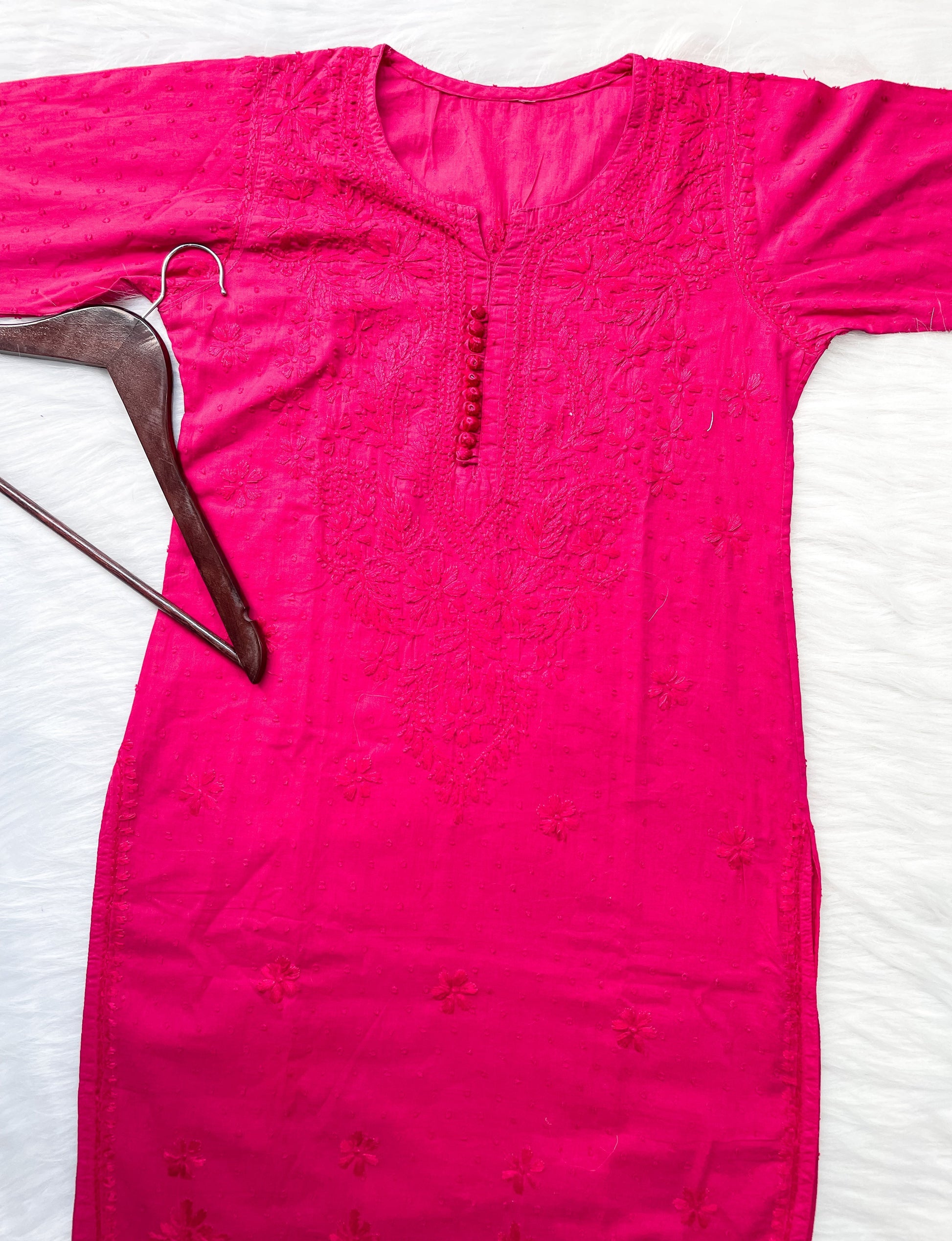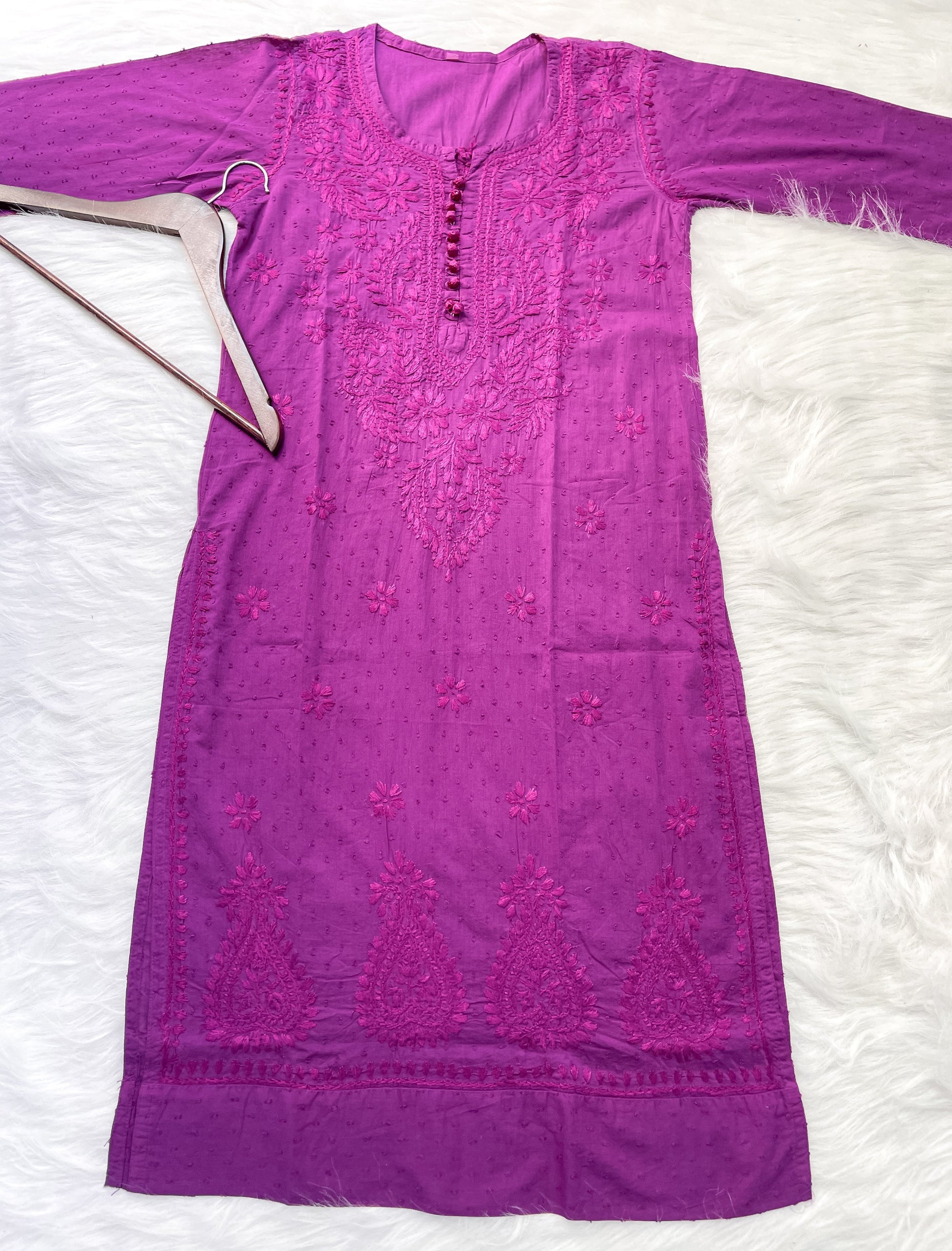 Dyed Cotton Chikankari Kurti & Lycra Pant Set, Pockets Both Side of the Pant