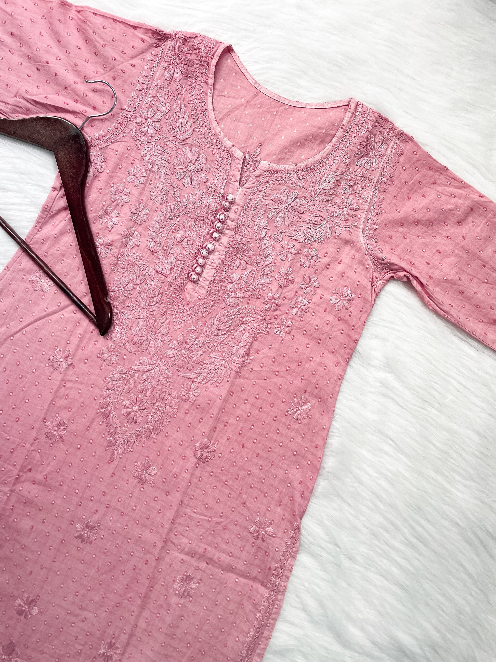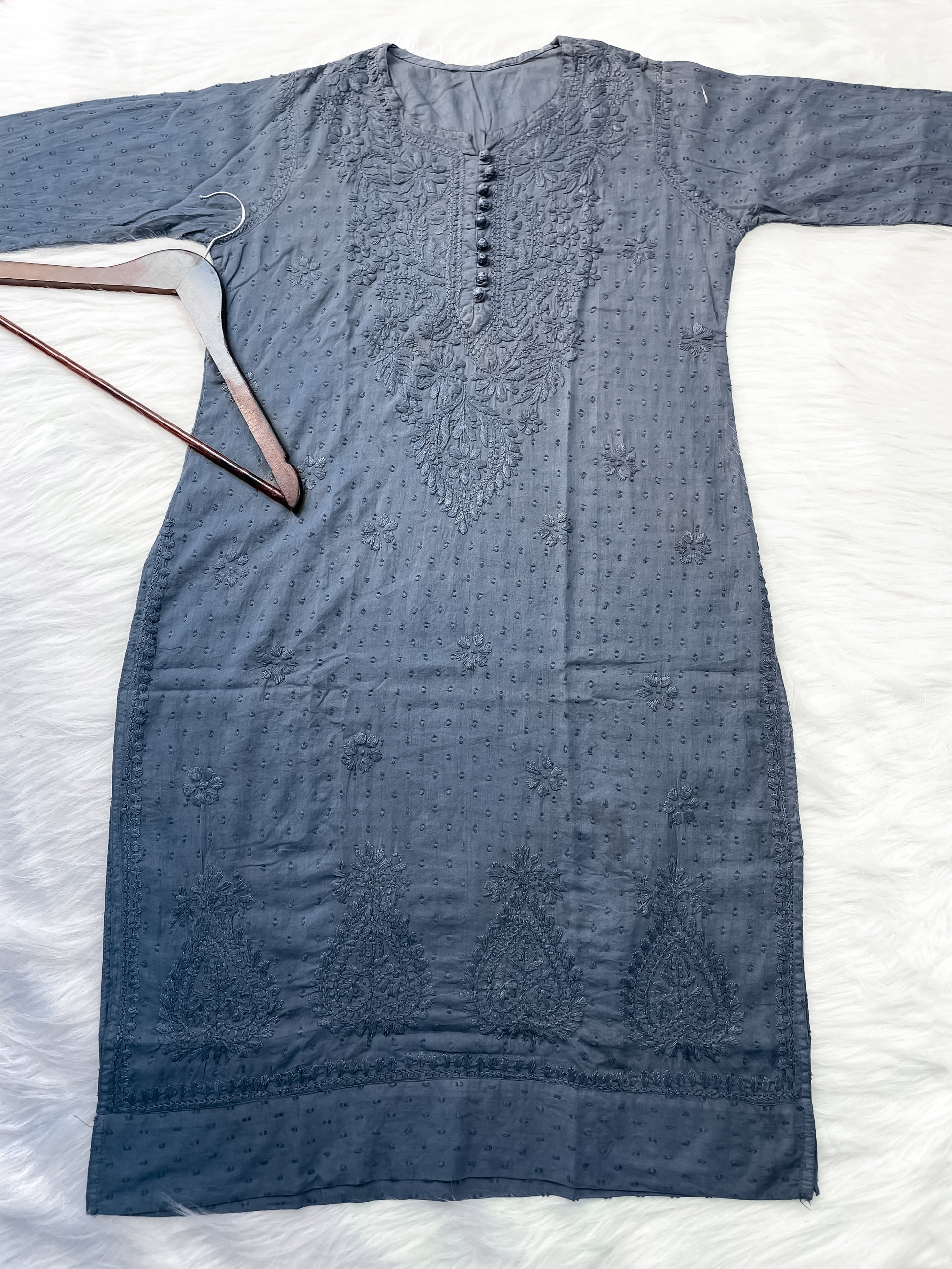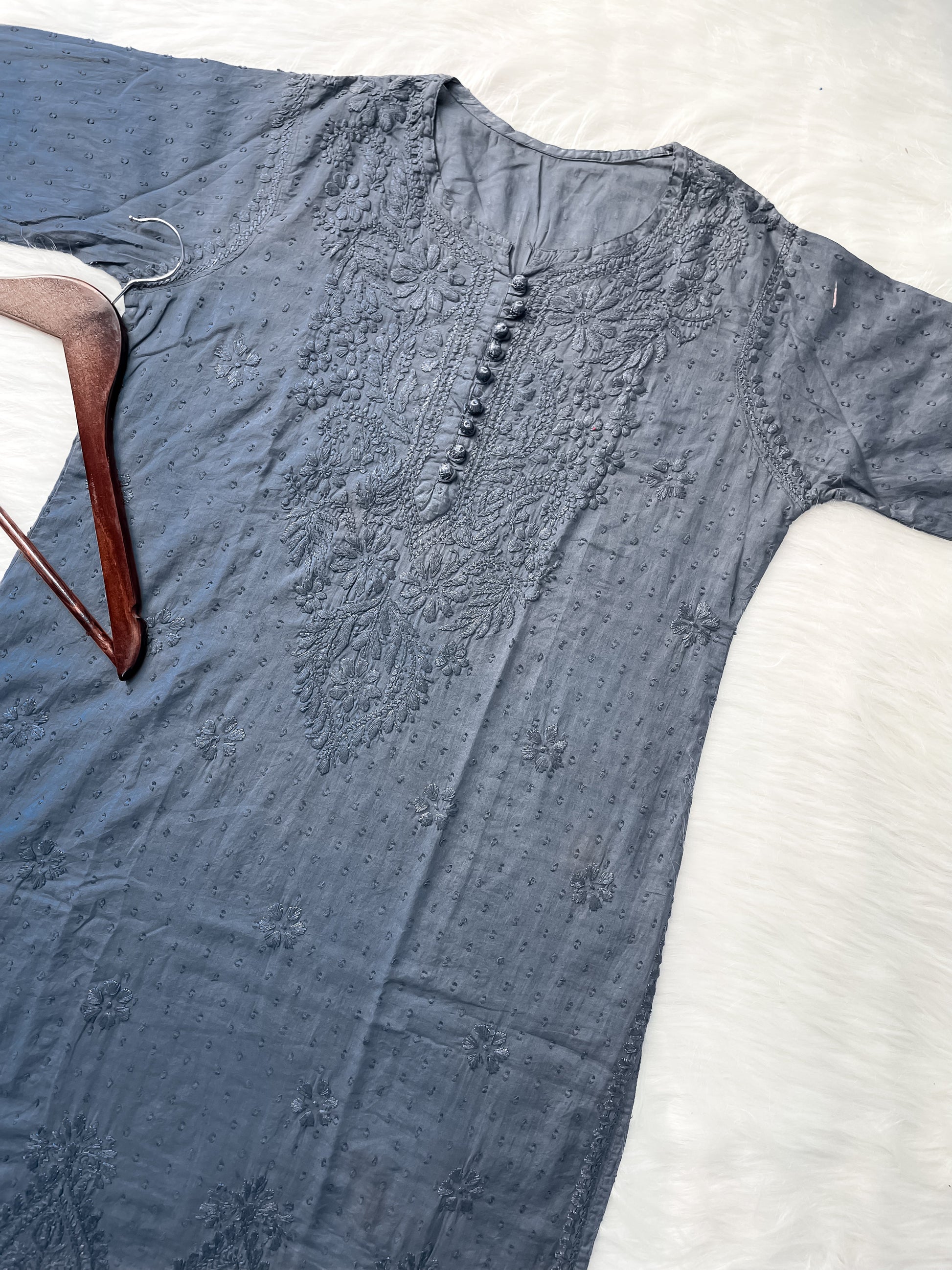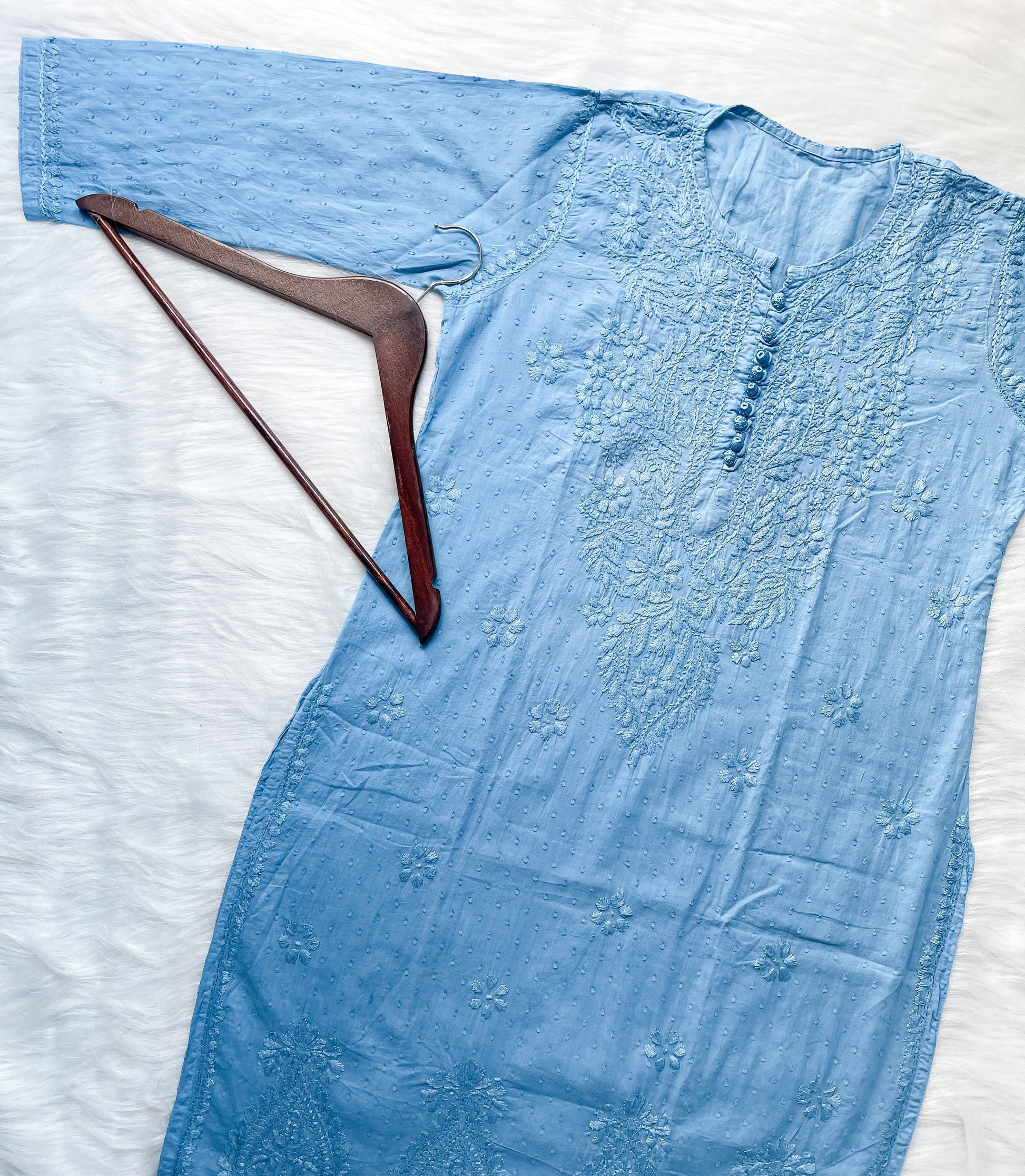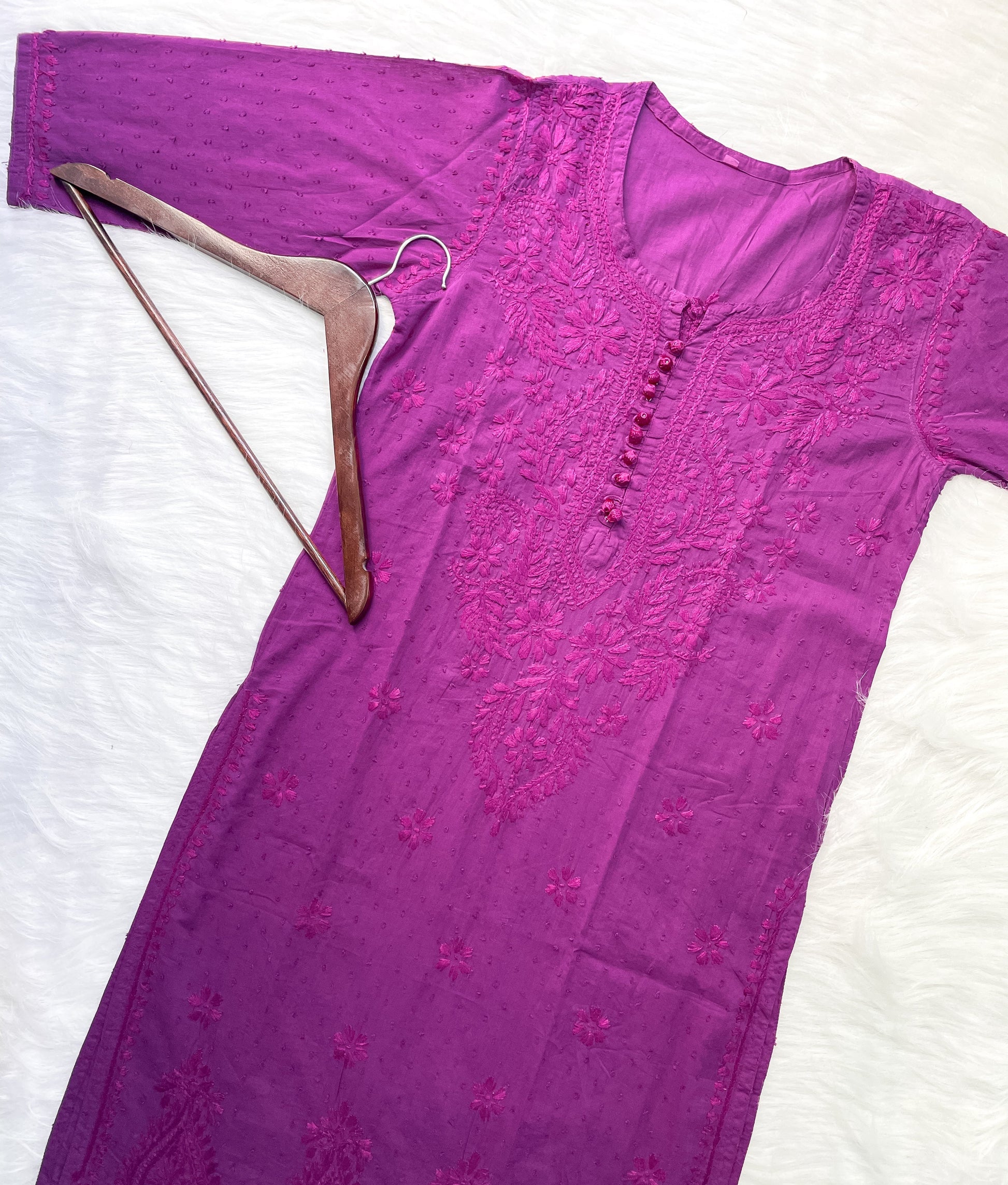 Dyed Cotton Chikankari Kurti & Lycra Pant Set, Pockets Both Side of the Pant