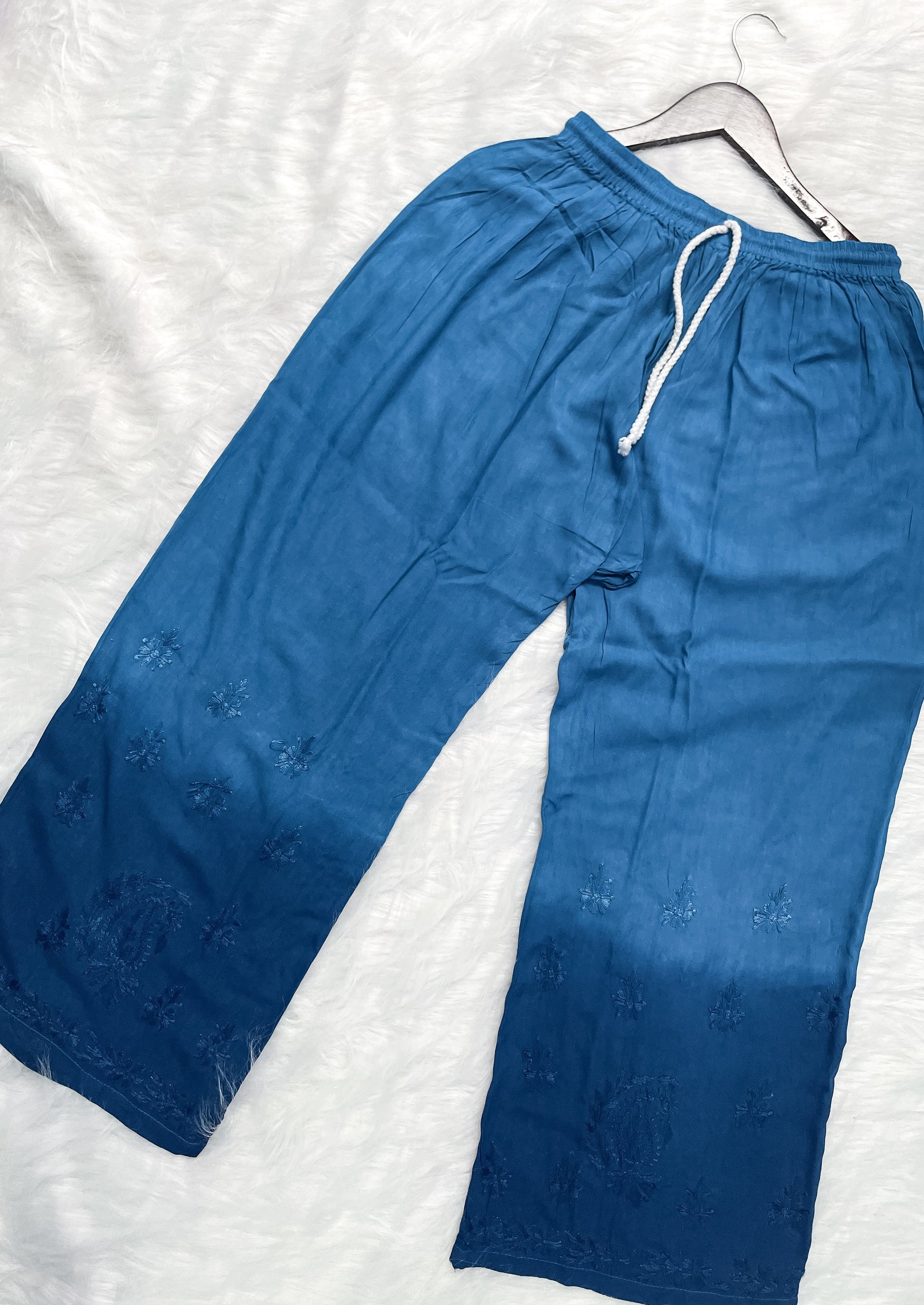 Style Name: Ombre Dyed Chikankari Rayon Kurti, Palazzo and Dupatta Set