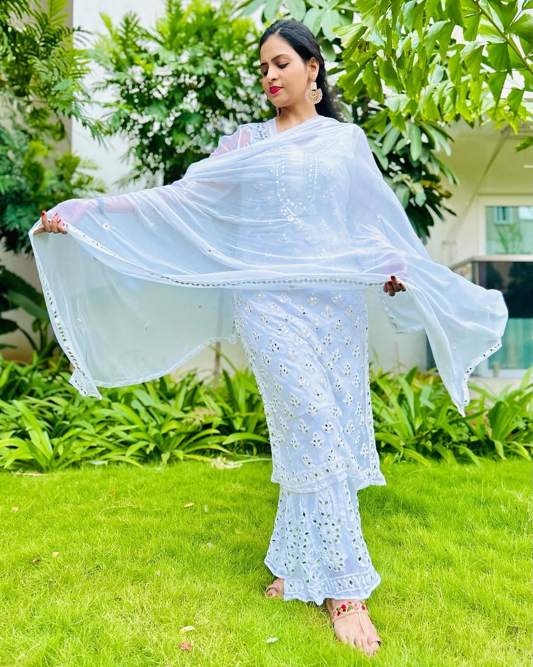 Style Name: Chiffon Georgette Mirror Work Chikankari Kurti 4-Piece Set