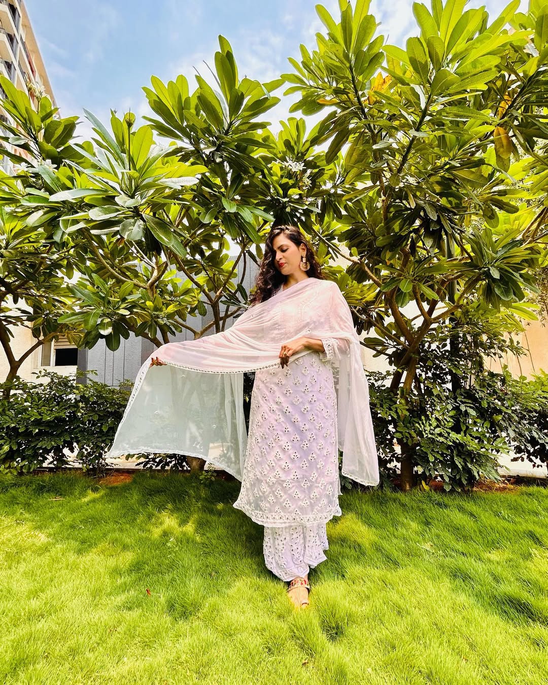 ✔ Exquisite Hand-Embroidered Chikankari Work: Features intricate Chikankari stitches like ‘Ulti Bakhiya,’ ‘Phanda,’ ‘Keel Kangan,’ and ‘Ghas Patti’ with real pasted mirror work, adding elegance and charm.