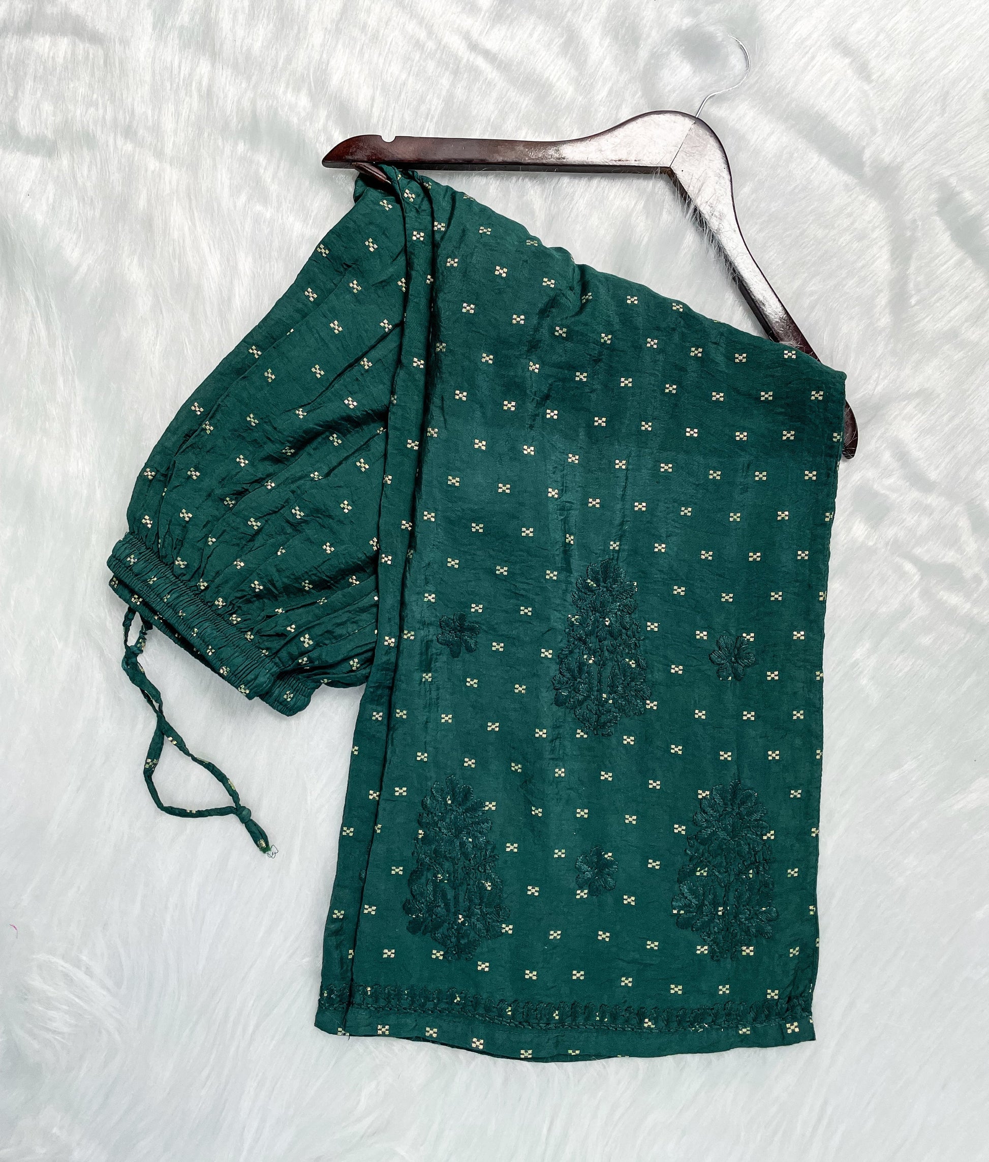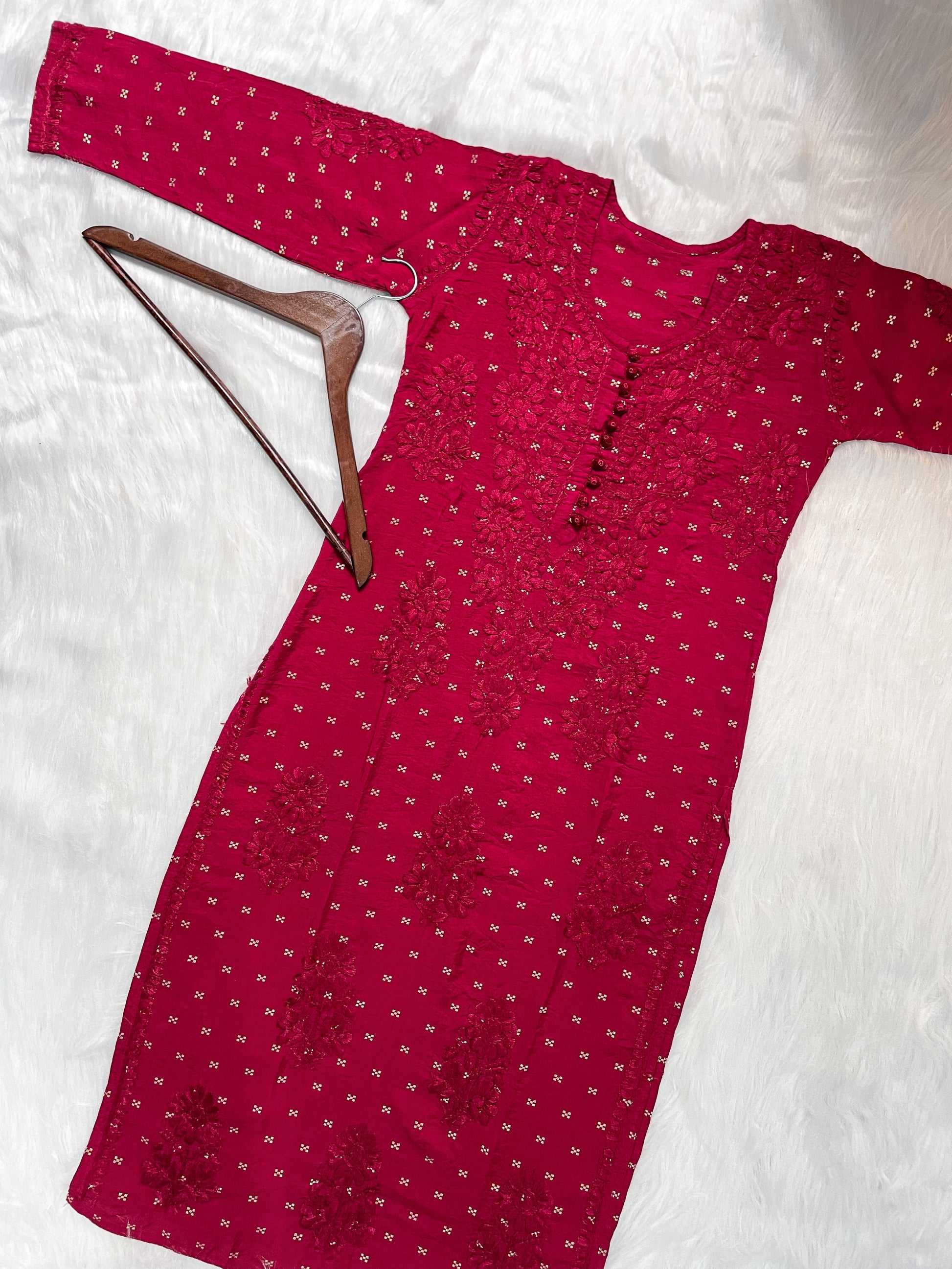 Premium Dyed Chanderi Silk Lucknowi Chikankari Kurti and Palazzo Set for Women