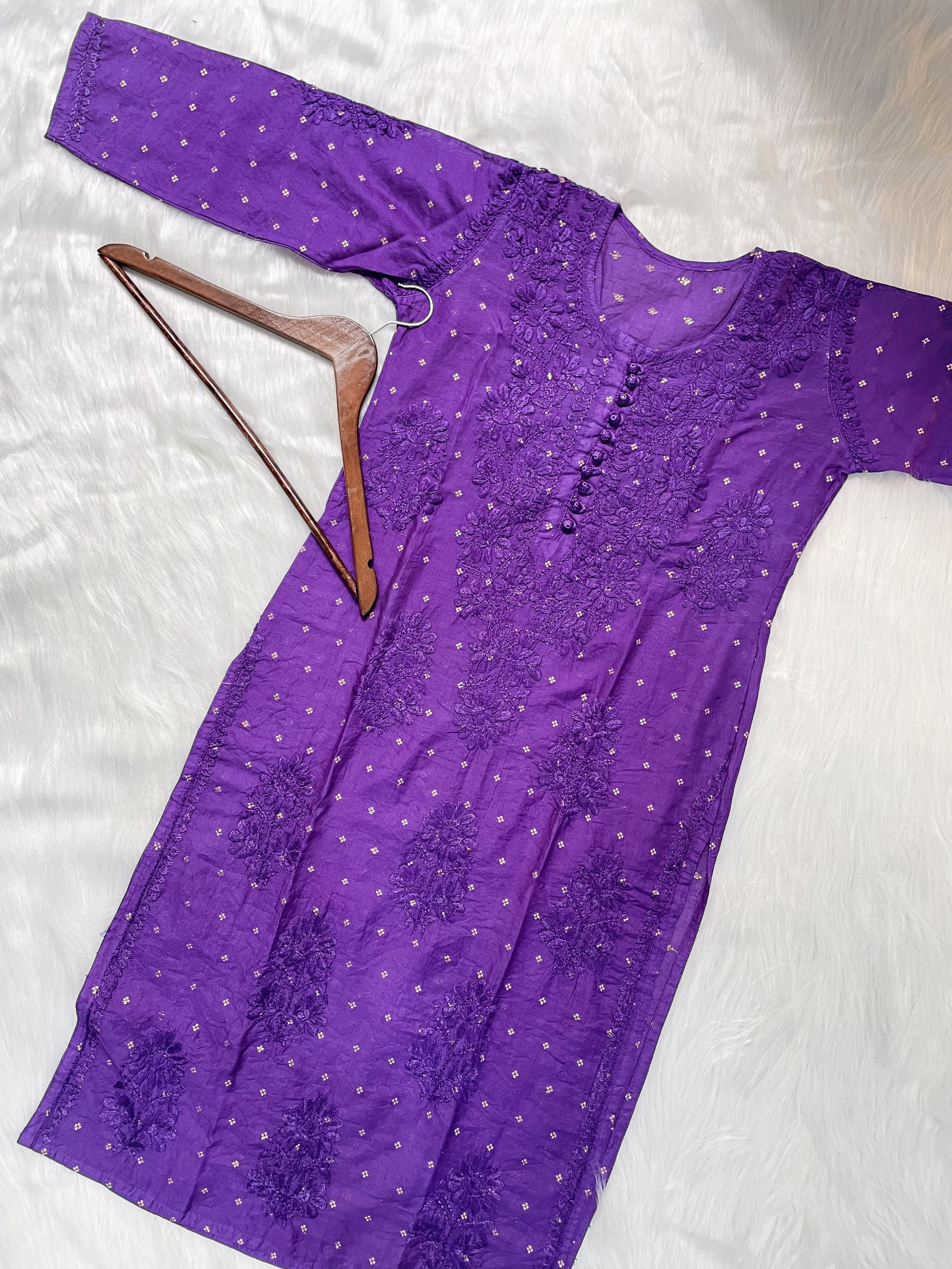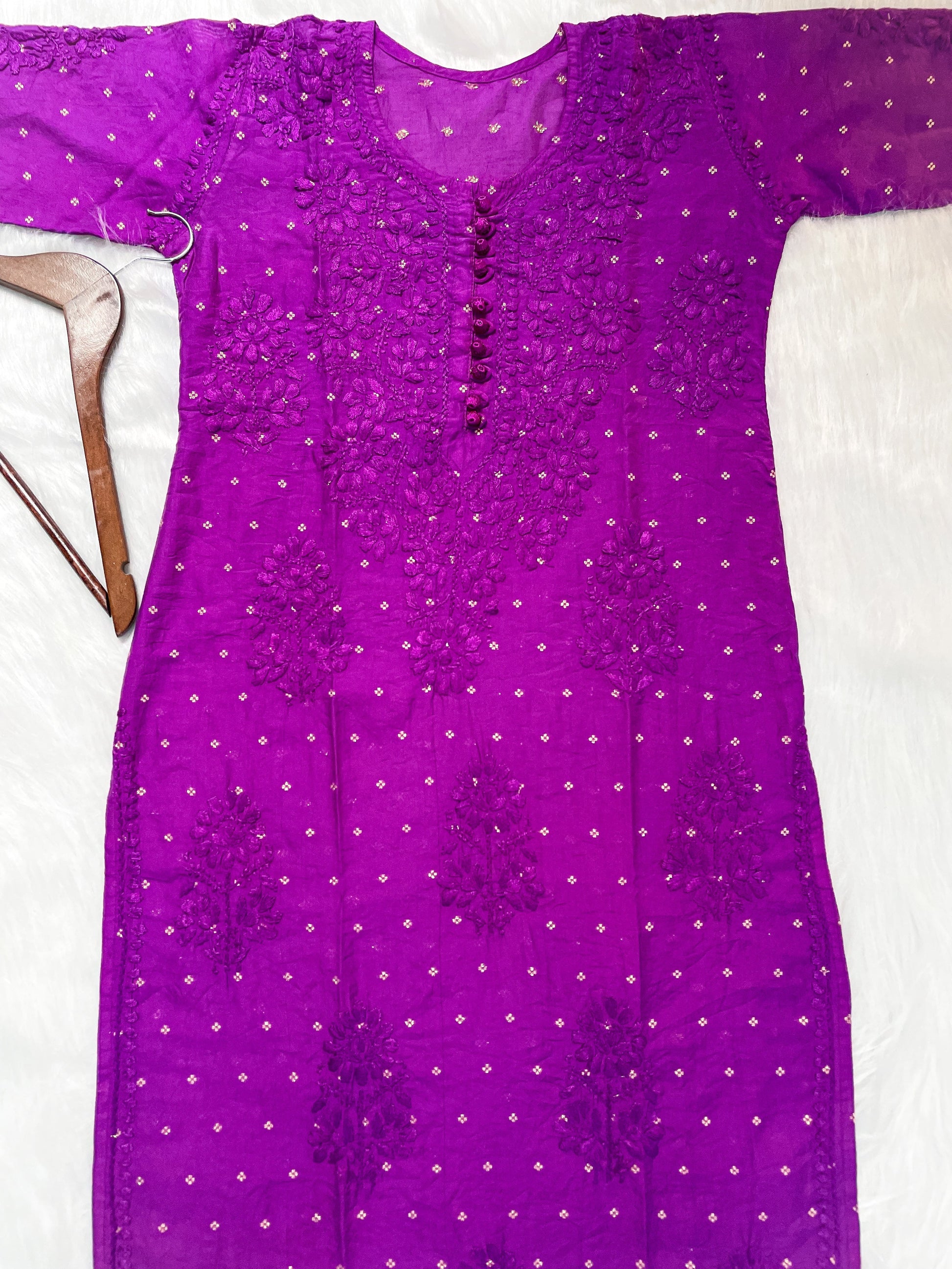 Style Name: Dyed Chikankari Chanderi Kurti And Palazzo Set