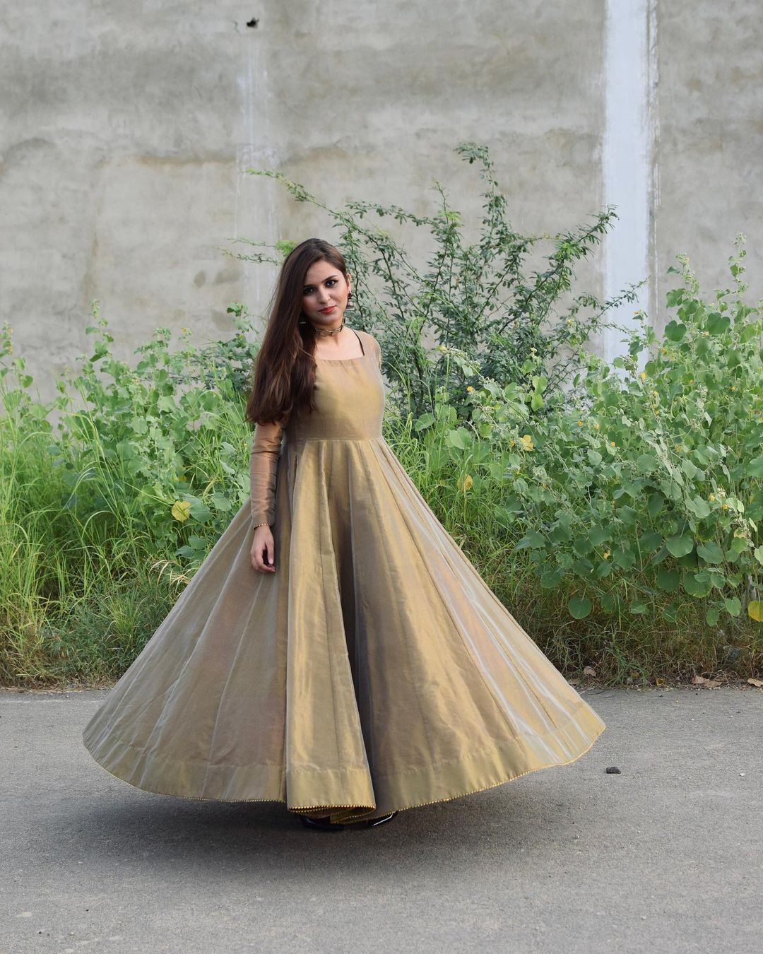 PRESENTING NEW BRONZE GOLD LAMA ANARKALI GOWN DUPPTA SET READY TO WEAR FULLY STTICHED