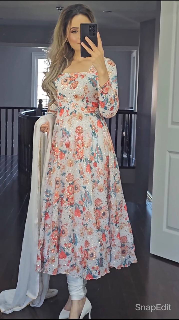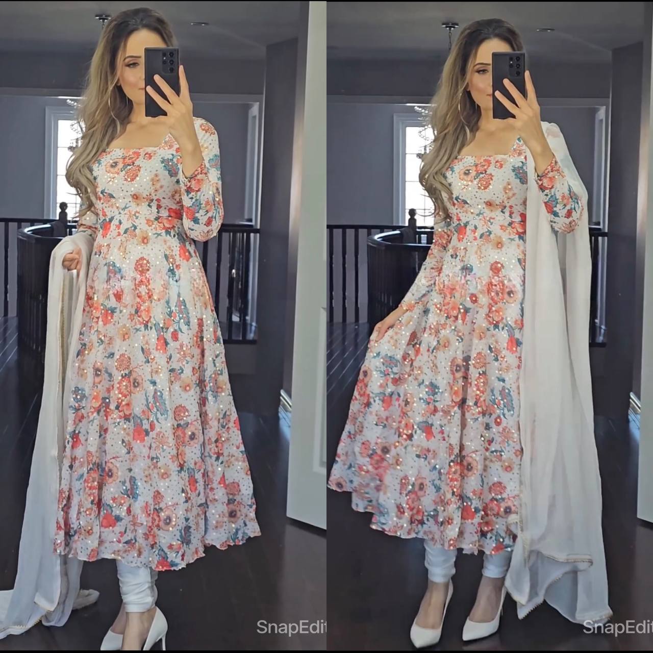 💃*Anarkali Fabric :* Heavy Faux Georgette Material With *Digital Print* And Diamond 💎 Work*( Fully Sleeves )*