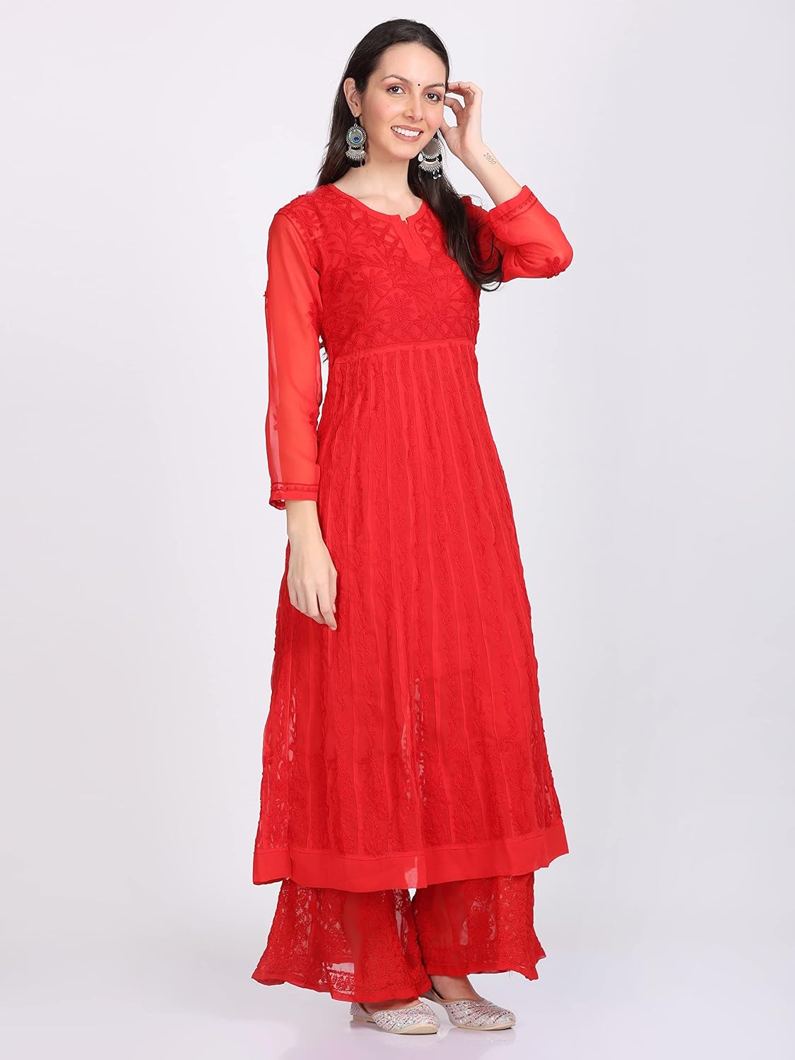 Faux Georgette Chikankari Flared Anarkali with Matching Dupatta & Cotton Inner